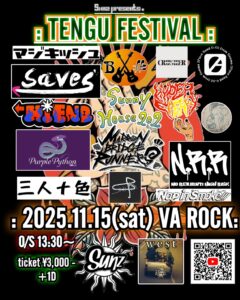 日時 : 11月15日(土) 場所 : 桐生 Club With Live Music VA ROCK 時間 : 13:30〜21:50 出演 : マジキッシュ/Sunz/G-OZ/三人十色/PURPLE PYTHON/saves/N.R.R/Hyper Freaky/B#/Nap in Smoke!!!/MARRON BRIDGE RUNNERS/Sunny House 202/HiEND/クラッシャーコージ 料金 : ¥3000+1ドリンク¥550 ※マジキッシュは16:15出演予定。 チケット取り置き予約をする